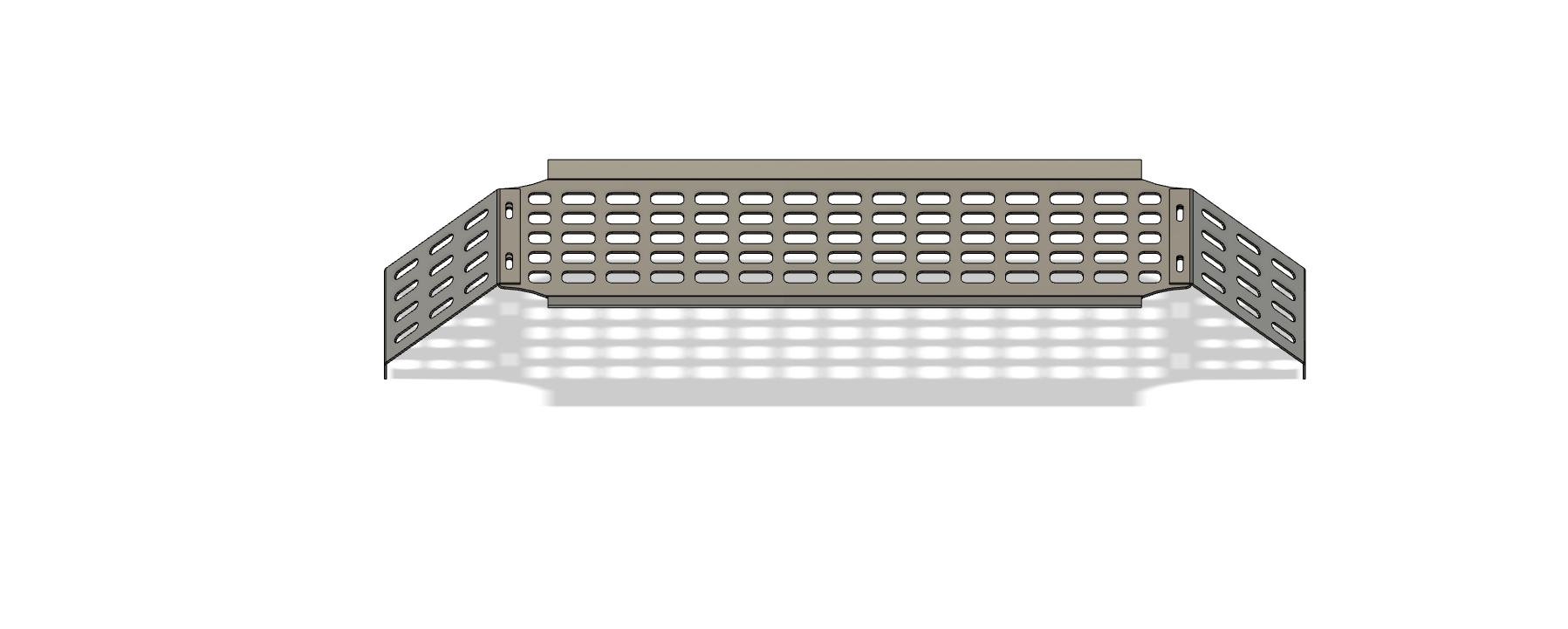 The over head panel system is comprised of 3 parts. 2 - end brackets and the main overhead panel. This makes it much easier to package and less expensive to ship. Made from 1/8" thick mild steel plate, with a CNC plasma cut grid of 1-12" x 3/4" slots offering infinite mounting possibilities. The overhead panel system mounts in place of the hook bracket found over 5th Gen 4runner rear windows, utilizing the factory body mount bolts. Making these panels a very heavy duty and stable, storage solution.
