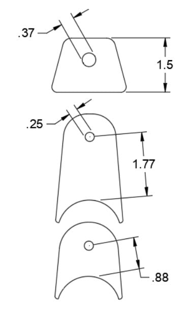 1 Flat tab design, and 2 different tabs designed for welding to 1.75" tube. Adjust hole size to fit your application.
